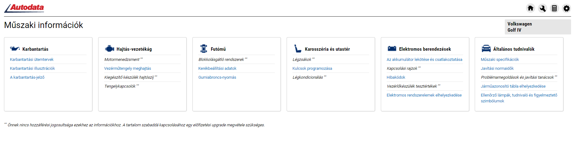 S&M és D&R modul táblázat A zöld pipára kattintva elérheti a komponenshez tartozó informális képet Modul S&M D&R Karbantartási ütemtervek ✓ ✓ Karbantartási illusztrációk ✓ ✓ Karbantartás jelző ✓ ✓ Kulcs programozás ✓ ✓ Futómű beállítási adatok ✓ ✓ Gumiabroncs-nyomás értékek ✓ ✓ Elektromos parkolófék ✓ ✓ Gumiabroncs nyomás ellenőrző rendszer ✓ ✓ Vezérlés ✓ ✓ Műszaki specifikációk ✓ ✓ Javítási normaidők ✓ ✓ Járműazonosítók elhelyezkedése ✓ ✓ Ellenőrző lámpák, szimbólumok ✓ ✓ Akkumulátor (indító és Hibrid meghajtó) ✓ ✓ Diagnosztikai hibakódok ✓ ✓ Rendszerelem elhelyezkedés ✓ ✓ Kipufogógáz értékek ✓ ✓ Légzsákok ✓ Légkondicionálás ✓ ABS ✓ Motor menedzsment ✓ Kiegészítő hajtószíjak ✓ Diesel kipufogógáz utókezelés ✓ Tengelykapcsolók ✓ Problémamegoldások, javítási tanácsok ✓ Kapcsolási rajzok ✓ Vezérlőkészülék tesztértékek ✓ Éves díj 180 000 Ft+Áfa/év 295 000 Ft+Áfa/év Megrendelem