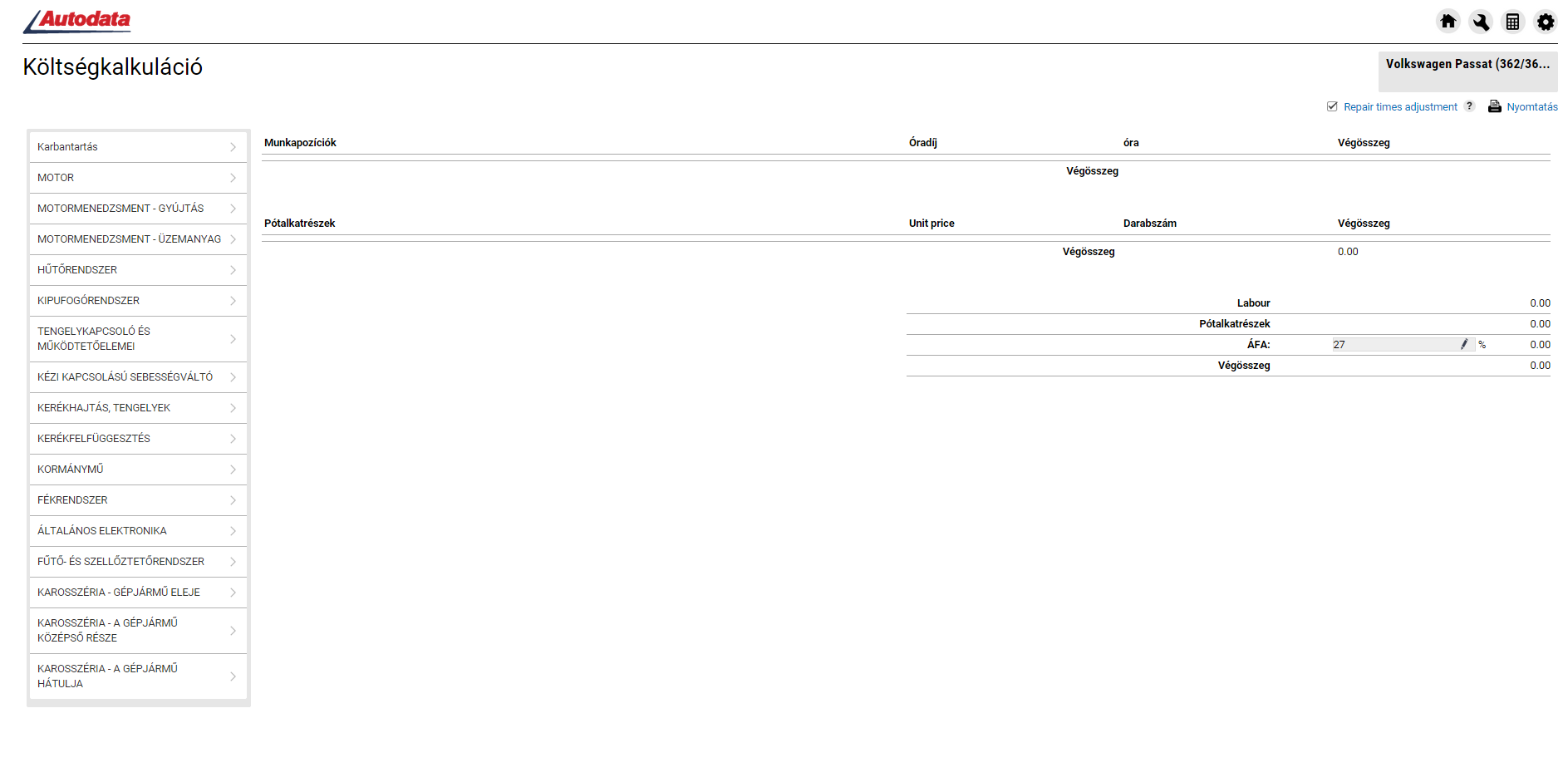 Árbecslés készítésekor az egyes munkafolyamatokhoz szükséges alkatrészek automatikusan hozzáadódnak a kalkulációhoz. Gyorsabb munka, kevesesebb hibalehetőség.