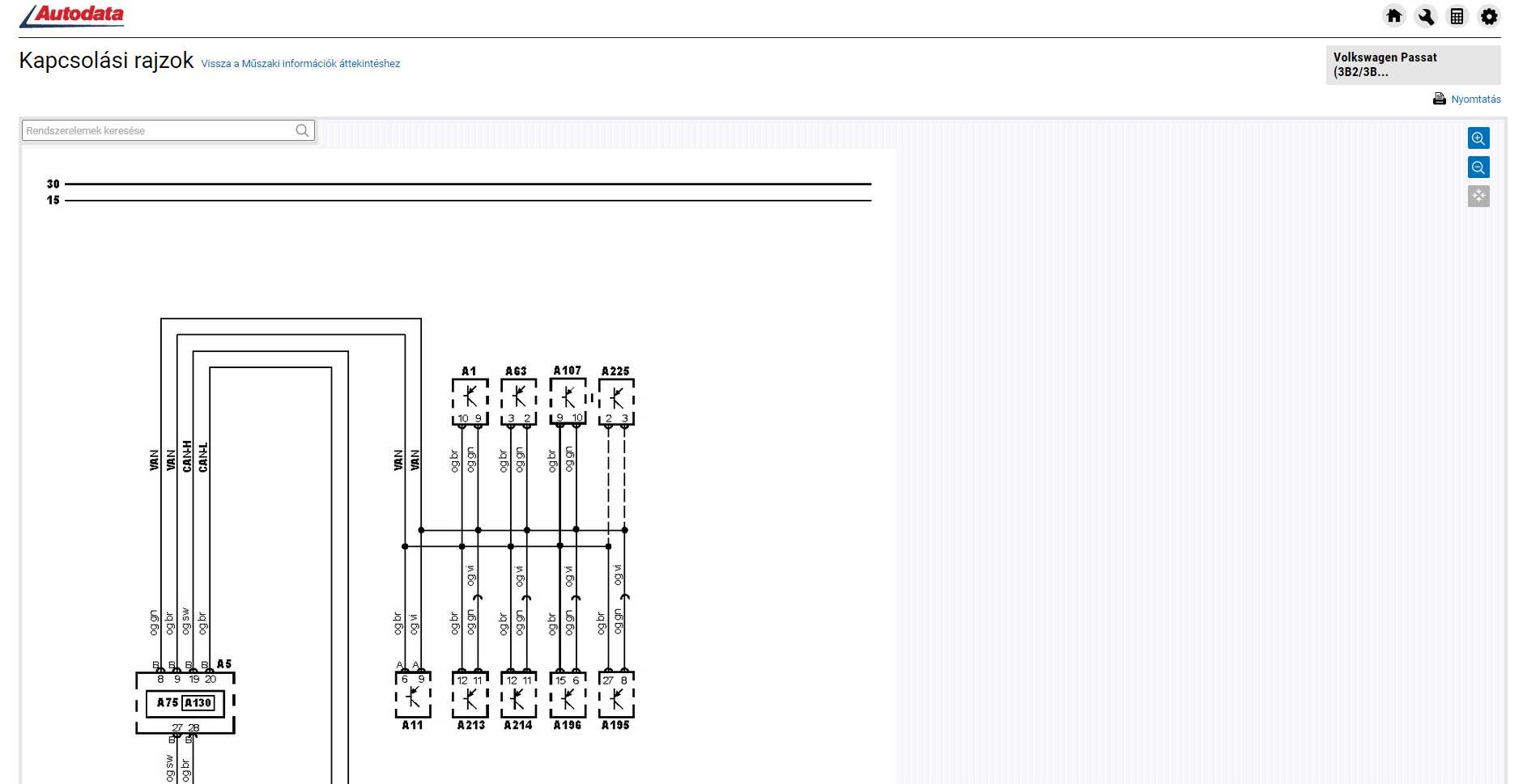 Új, interaktív kapcsolási rajzok - könnyű keresés, nagyító funkció, automata komponensazonosító és közvetlen adatmegjelenítés mellett további új hasznos funkciók.